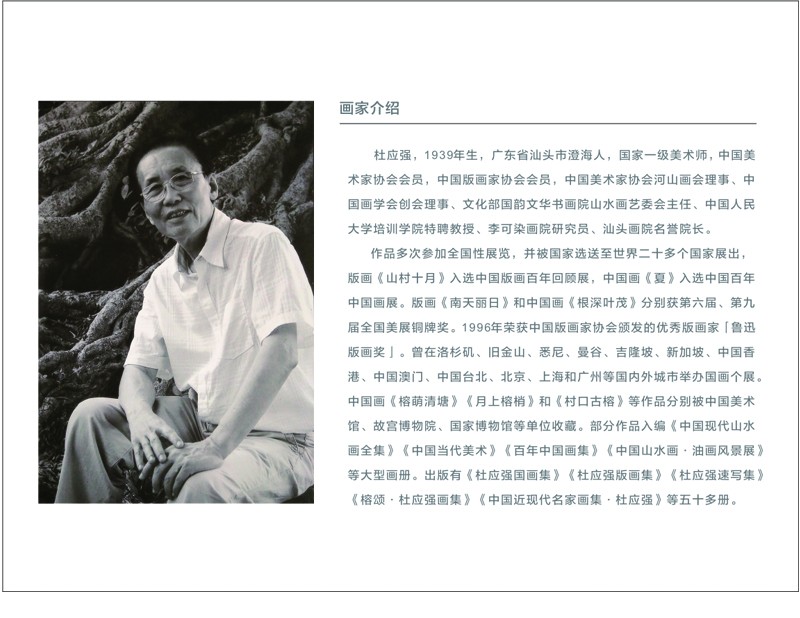 杜應強,1939年生(shēng),廣東省汕頭市澄海人(rén),國家(jiā)一級美術(shù)師(shī),中國美術(shù)家(jiā)協會(huì)會(huì)員,中國版畫(huà)家(jiā)協會(huì)會(huì)員,中國美術(shù)家(jiā)協會(huì)河(hé)山(shān)畫(huà)會(huì)理(lǐ)事、中國畫(huà)學會(huì)創會(huì)理(lǐ)事、文化部國韻文華書(shū)畫(huà)院山(shān)水(shuǐ)畫(huà)藝委會(huì)主任、中國人(rén)民大(dà)學培訓學院特聘教授、李可(kě)染畫(huà)院研員、汕頭畫(huà)院名譽院長。